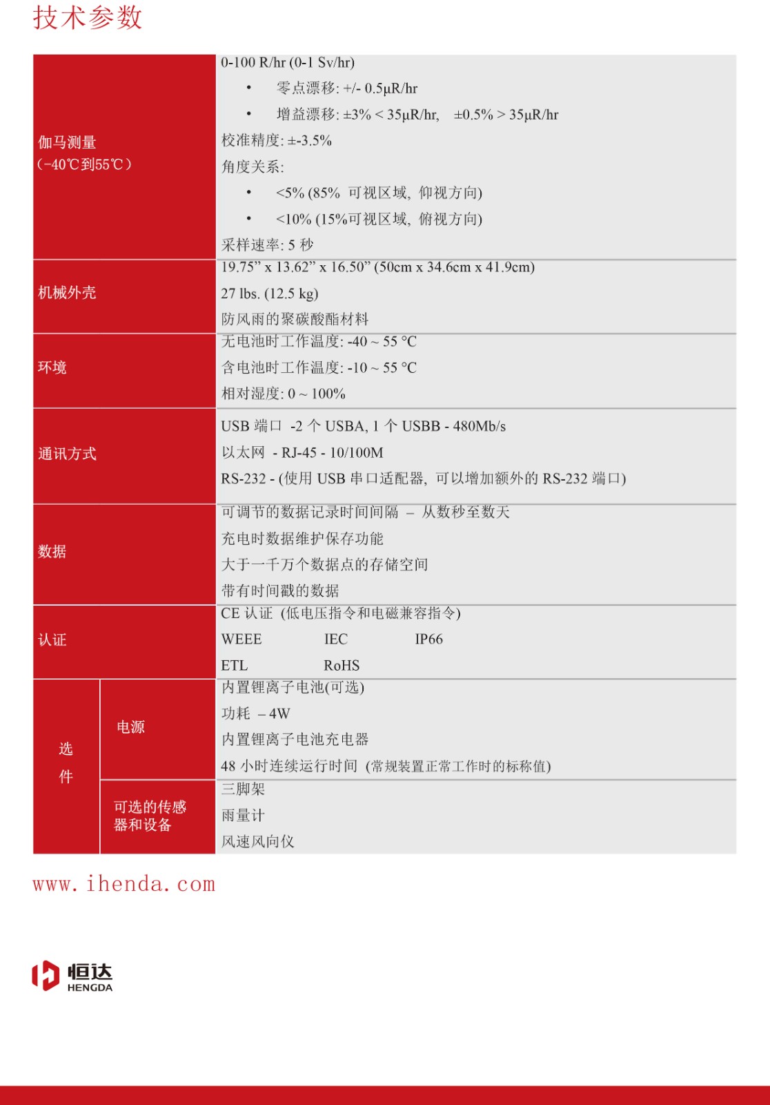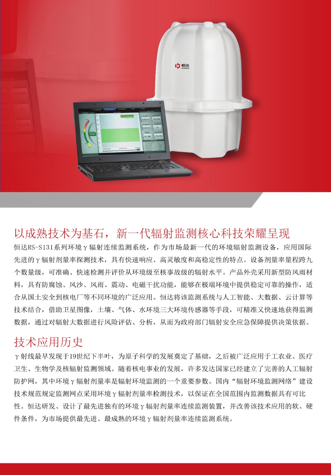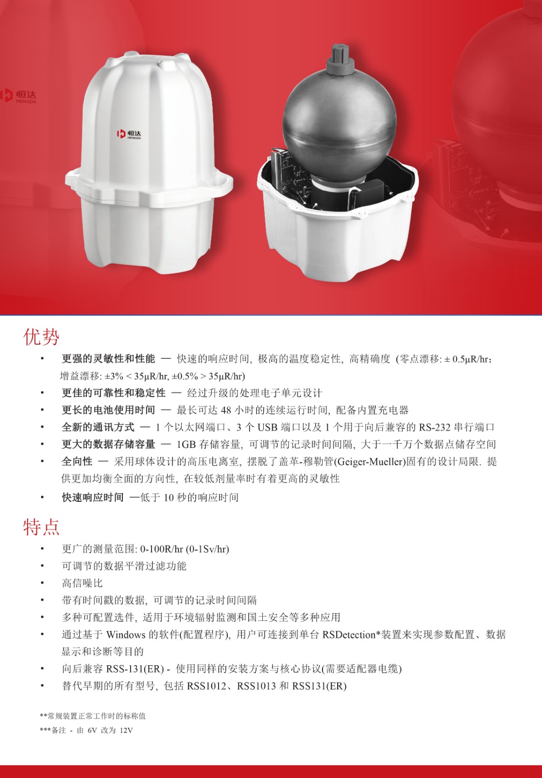 本产品为新一代的环境辐射监测设备,在低剂量水平伽马辐射的探测和测量方面提供了更加卓越的技术与表现。本产品继续沿用前代产品的环境γ辐射剂量率监测技术,但在以下多个关键领域进行了改进:灵敏性、可靠性、稳定性。本产品采用新型防风雨外壳,电子器件和诊断原件都进行了更新,能够在极端环境中提供稳定可靠的操作,非常适合从国土安全到核电厂的各种广泛应用。